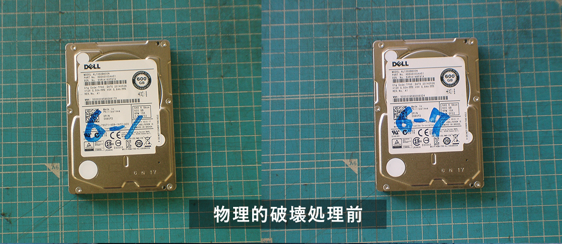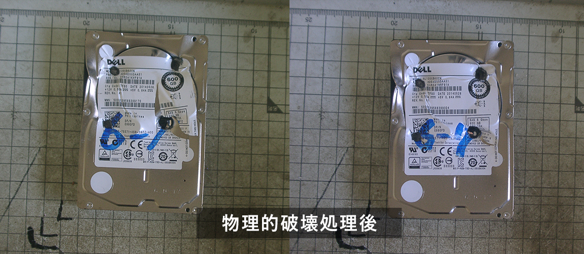 回収したHDDやSSDは物理的破壊を施しデータの読み出し、復元を不可能にします。